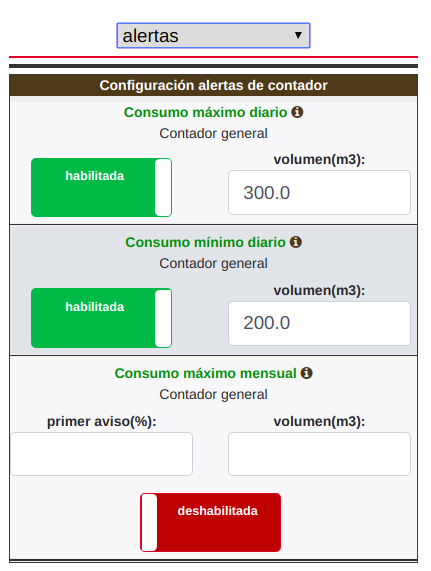 Podrás consultar los históricos de consumo de los contadores y de los distintos sectores