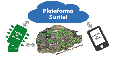 El equipo hardware es un placa electrónica que se instala al lado de los cabezales/hidrantes y ejerce como una puerta de acceso a los diferentes actuadores (p.e. solenoides) y sensores presentes en la instalación. La plataforma-backend está alojada en lo que se ha dado en llamar la nube, esto es, en máquinas/servidores conectados a internet, y alberga todos los datos y la lógica del sistema Sisritel. Por último, las aplicaciones son programas (sofware) que se ejecutan en el terminal del usuario (teléfonos, tablets, pc's,...). Pues bien, un proyecto Sisritel, dependiendo de los requerimientos de cada caso, se construirá a partir de los equipos y la plataforma mencionados, desarrollando nuevas aplicaciones que implementarán las funcionalidades particulares exigibles en cada caso